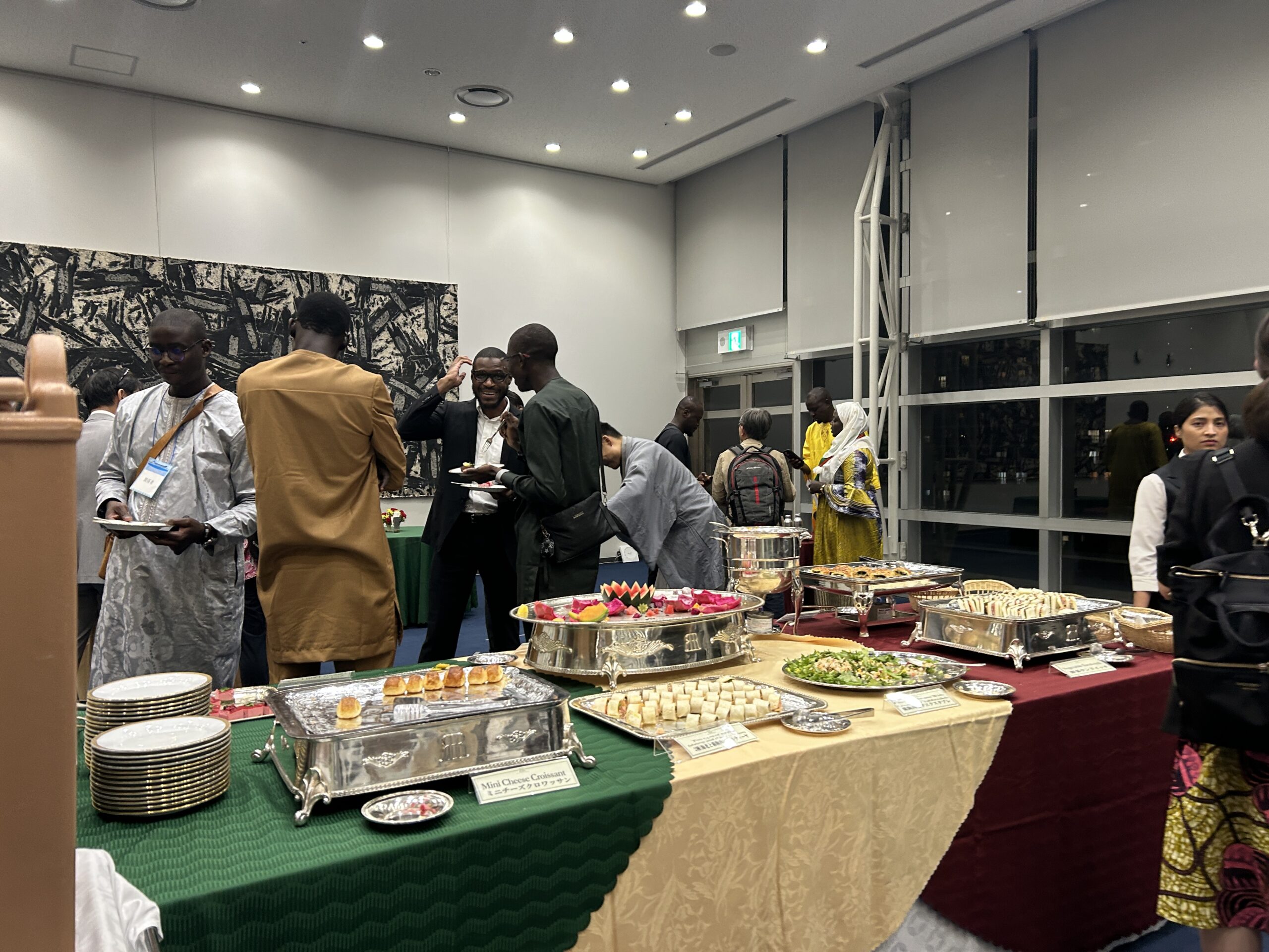 本プログラムは、隣接するリーガロイヤルホテル大阪での公式昼食会と、当館特別会議場でのビジネスフォーラム・交流会を組み合わせた構成で開催されました。 交流会は特別会議場ホワイエにて実施され、セネガルの国旗カラーで装飾を加えた華やかな空間で、参加者をもてなしました。
