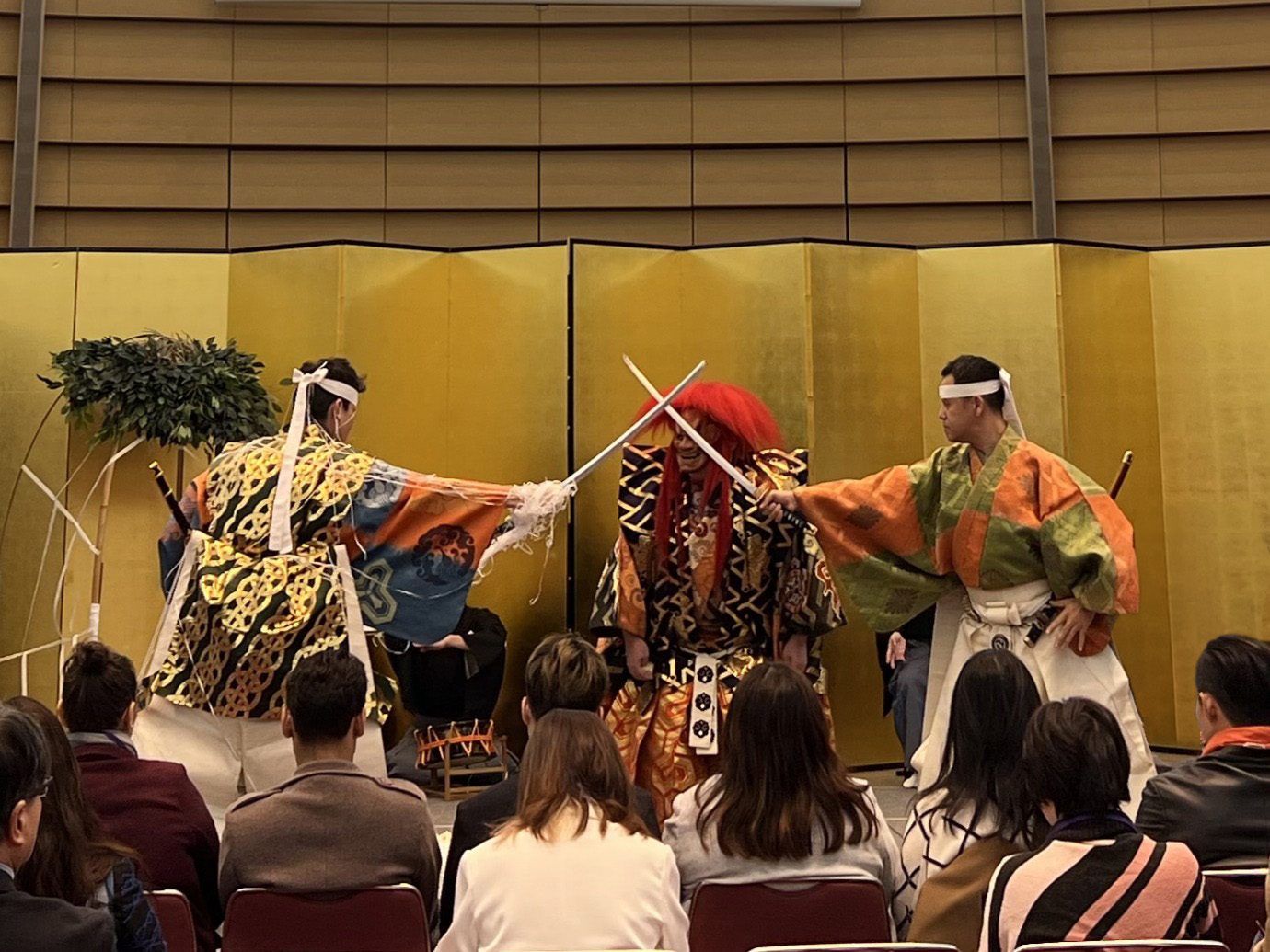 親交を深めるためのパーティの開始前には、本レセプションを盛り上げるアトラクションとして能が披露されました。英語での事前解説が付いた、山本能楽堂による「土蜘蛛」が演じられ、参加者は日本の伝統文化を体験することができ、パーティは盛況のうちに終わりました。